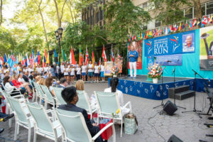 Au cours de cette cérémonie, des coureurs portèrent les drapeaux représentant les différentes nations participantes en présence d’ambassadeurs et délégués des Nations Unies dont le siège se situe à proximité de Dag Hammarskjold Plaza, lieu de cet événement. Ceux-ci adressèrent des messages de soutien à la Peace Run et exprimèrent leur attachement à l’idéal de la paix et aux efforts soutenus des Nations Unies à la défendre et à la promouvoir.