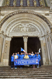 Cette année le relais a traversé la France de Calais à Genève et parcouru près de 700 km en 7 jours. L’ équipe internationale était représentée par des coureurs venus de 10 pays différents. Tout au cours de ce périple, des clubs de sports, des écoles, des mairies, des volontaires rencontrés en chemin, ont participé et offert leur soutien avec enthousiasme et sympathie. Le relais a été également accueilli à la basilique du Sacré-Coeur à Paris et à celle de Vézelay, deux lieux réputés pour leur rayonnement spirituel.